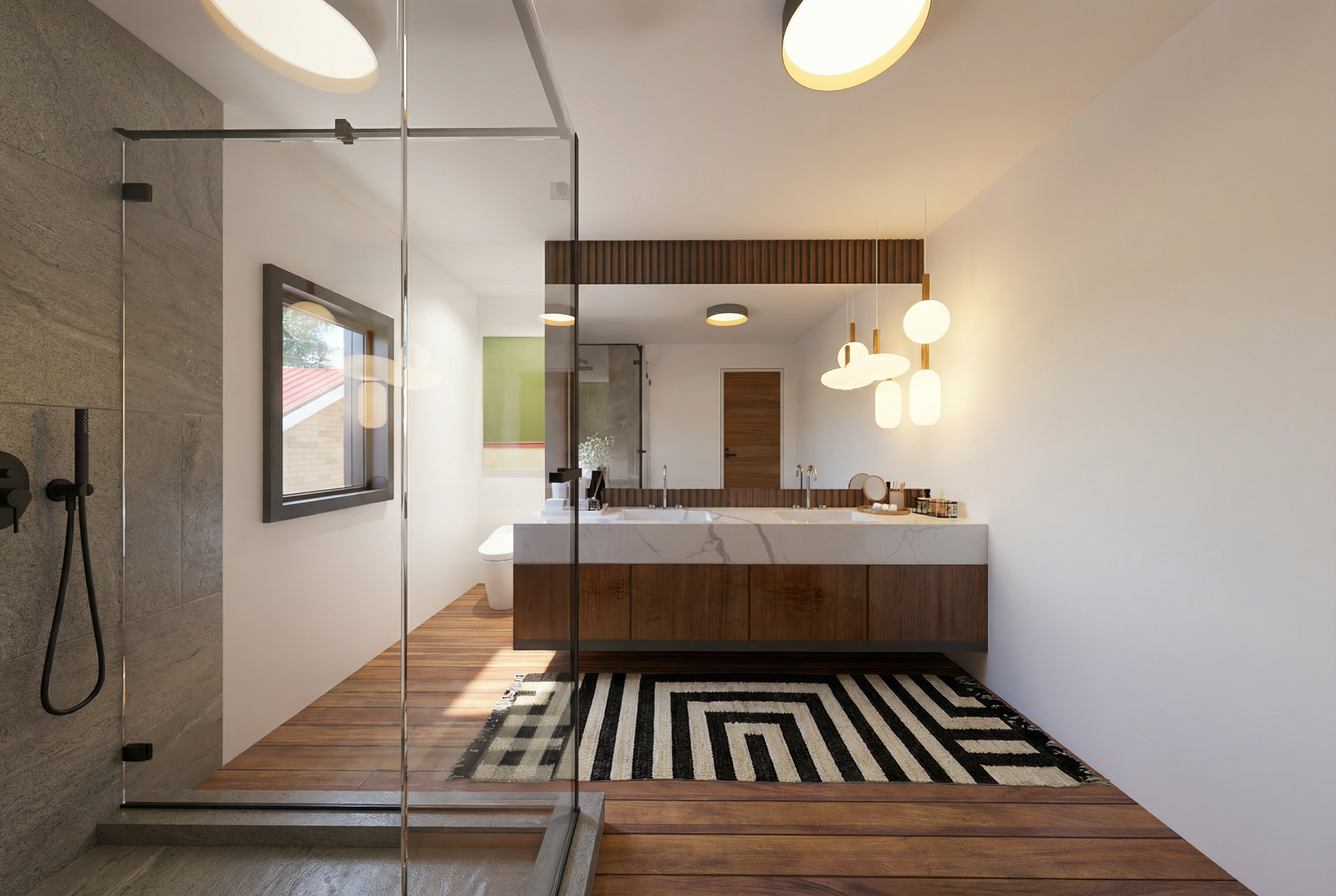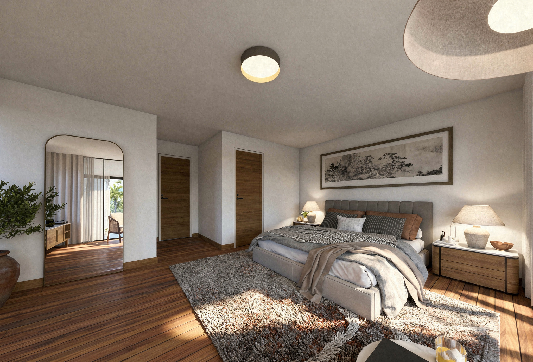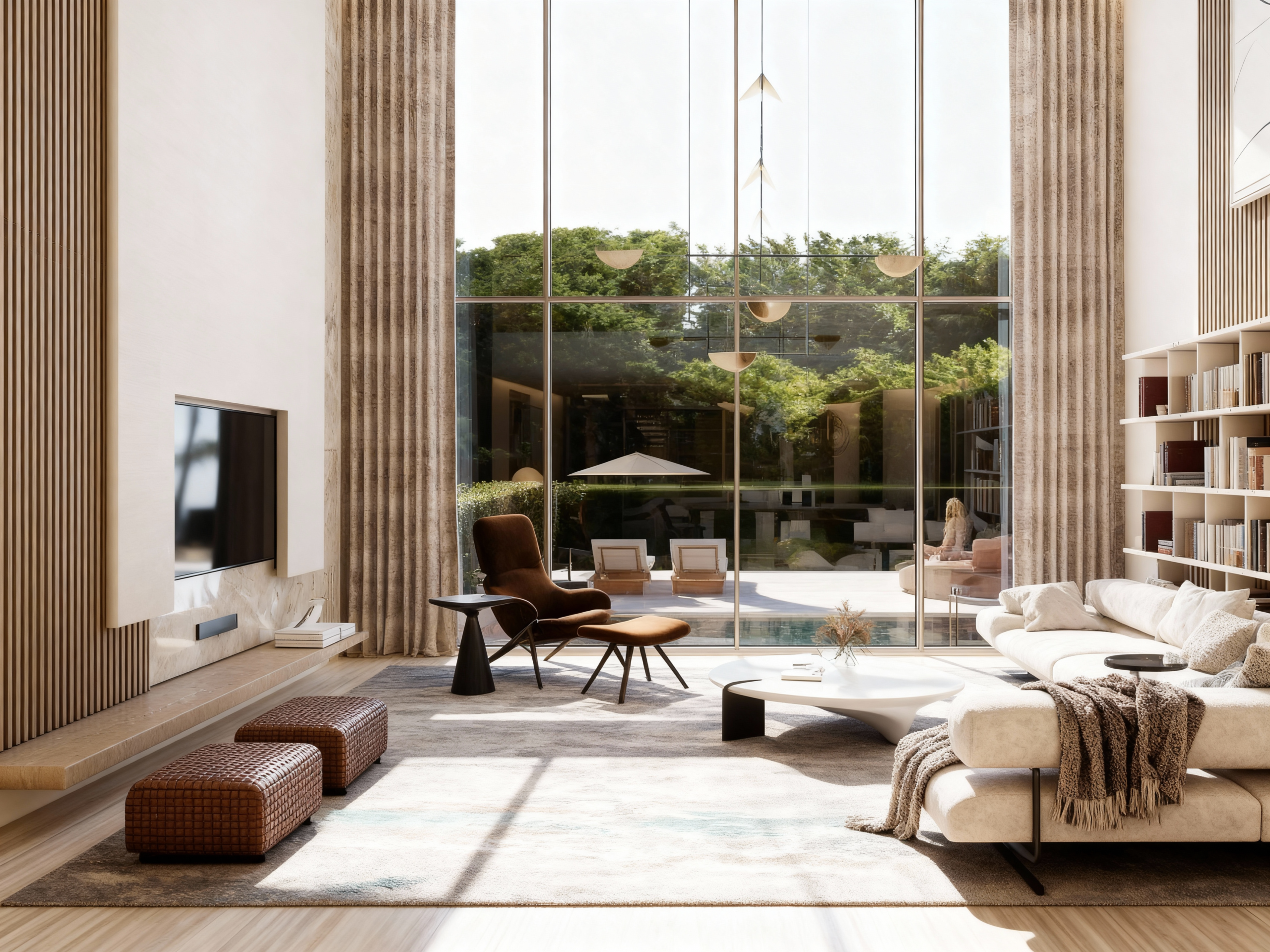 Each residence offers 4 bedrooms, 4 and 1 half bathrooms, and nearly 3,400 sq. ft. of interior living space. Large windows bring in natural light throughout the day, while double-height ceilings in the main living area create a sense of openness without feeling excessive.