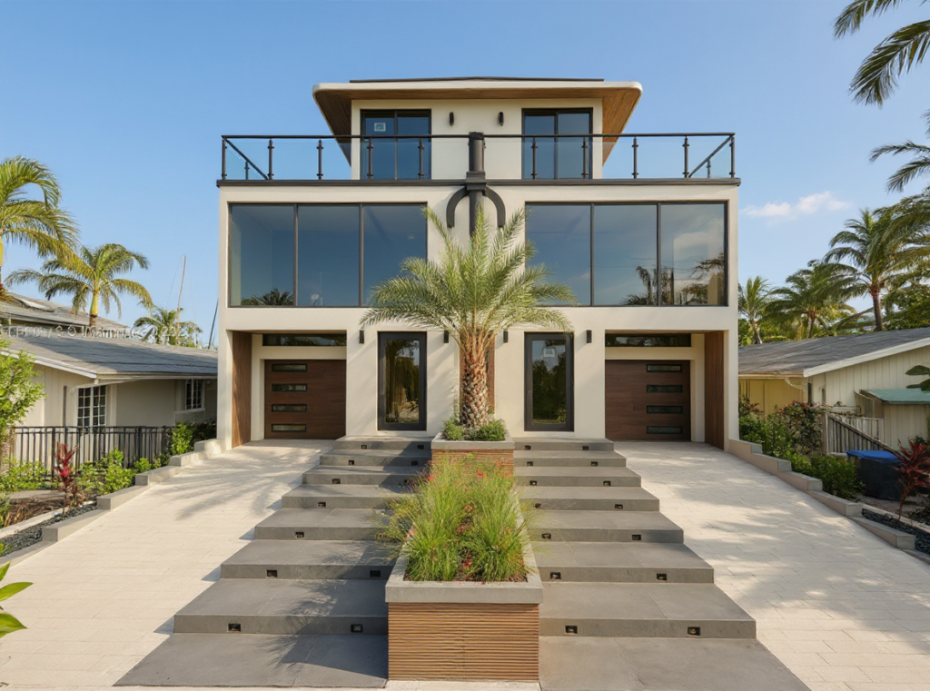 Located just off Las Olas Boulevard, this new construction waterfront duplex features two identical side by side townhomes, each offered at $3.8 million. The homes were designed with modern living in mind, combining clean architecture with practical layouts and direct access to the Atlantic Ocean.